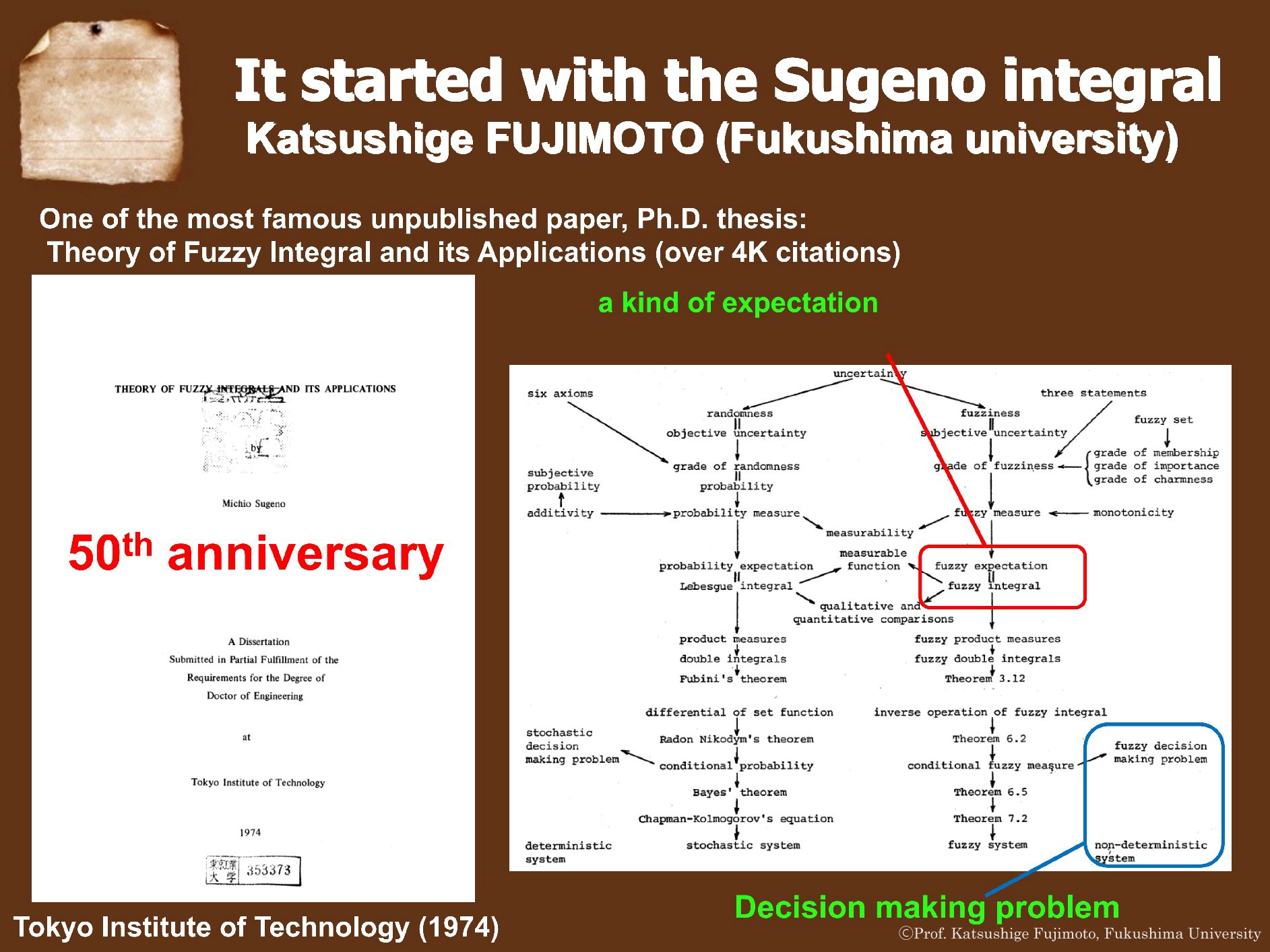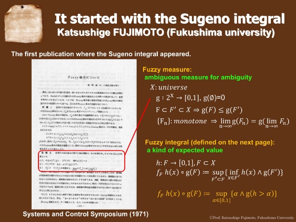 菅野先生の卓越した業績は、「ファジィ積分」から始まりました。