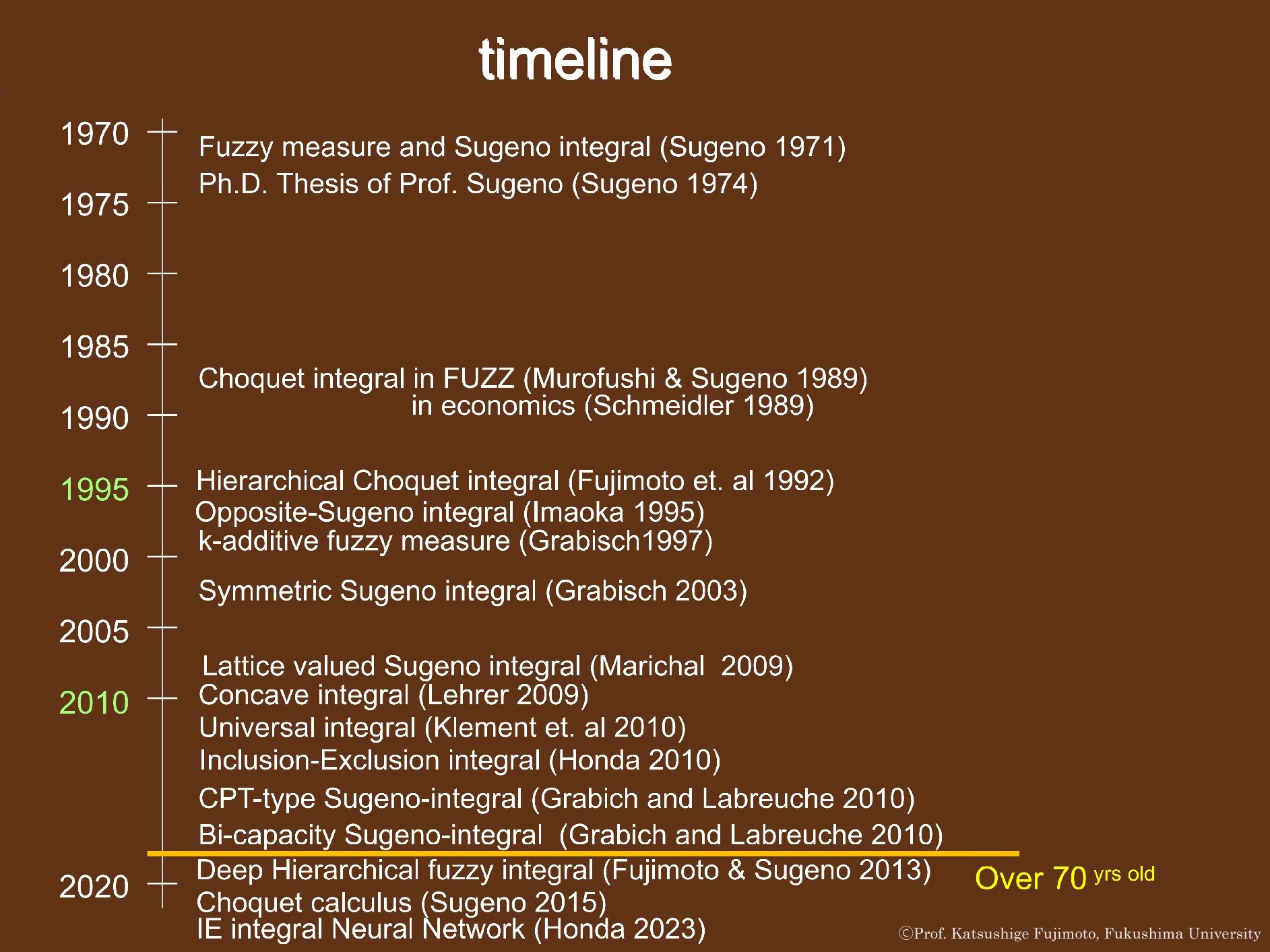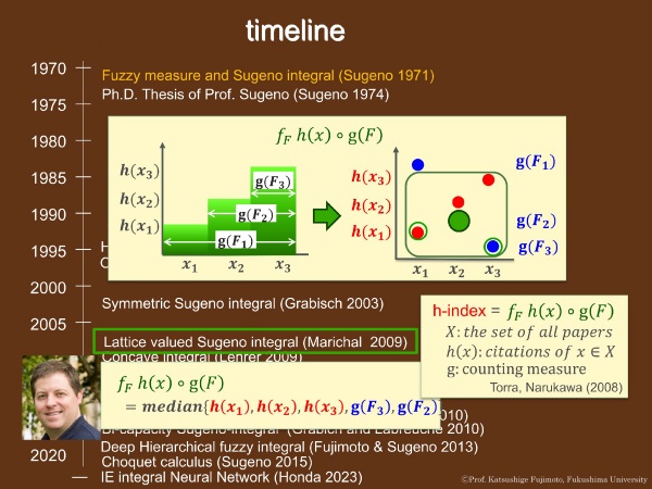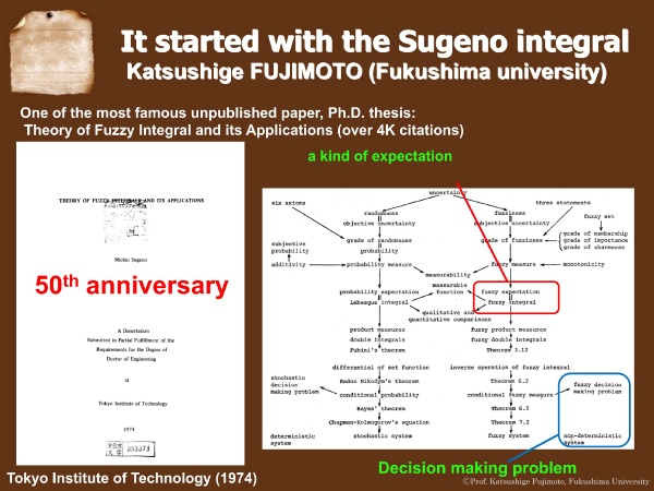 - Katsushige Fujimoto, “It started with the Sugeno integral”, in Envisioning the Future: Continuing the Legacy of Professor Michio Sugeno, Panel discussion at WCCI 2024, The IEEE World Congress on Computational Intelligence, Yokohama, Japan, June 30, 2024