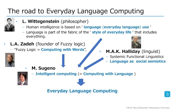 Based on all these ideas, Prof. Sugeno proposed the framework of intelligent computing, where computing is done with language. This was later named everyday language computing.
